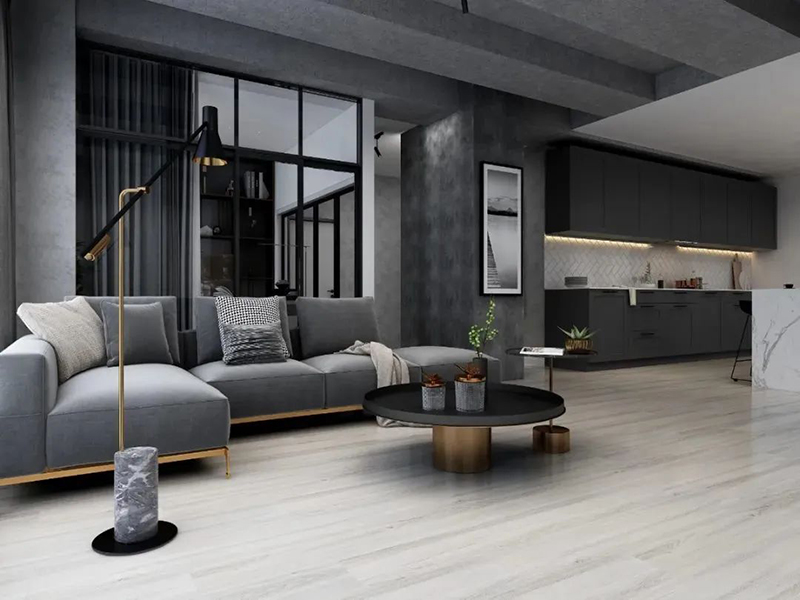灰色地板十分适合工业风,工业风重拾黑白灰的经典、简约时尚,灰色地板搭配硬线条工业风,在顺应时尚和简约生活的潮流下,缔造出一种有艺术感的全新质感。